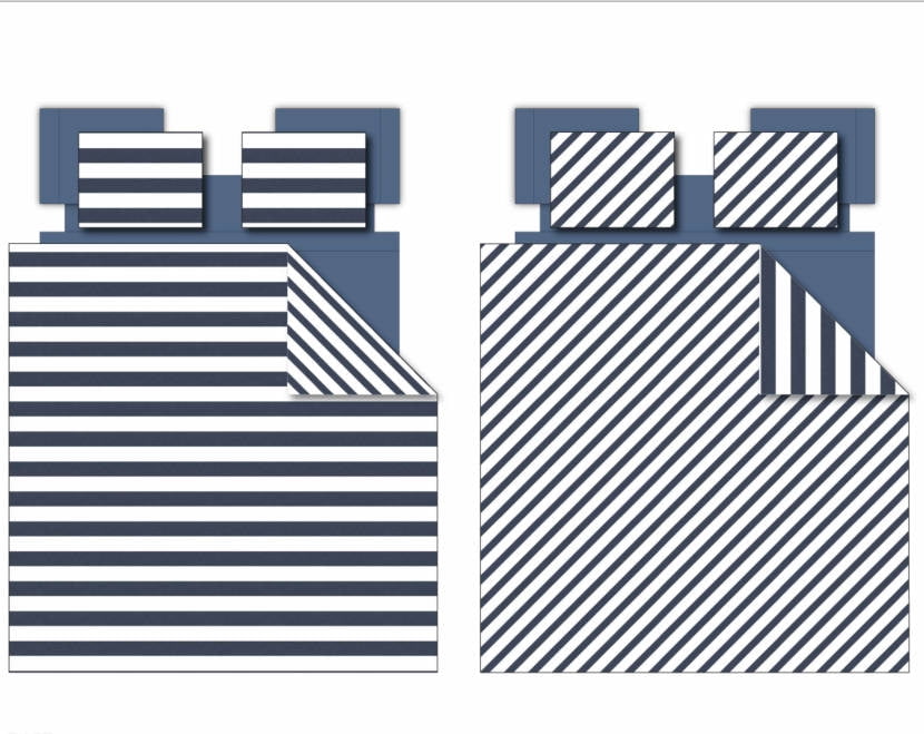 - Various textured prints on alternative-sized stripes for depth