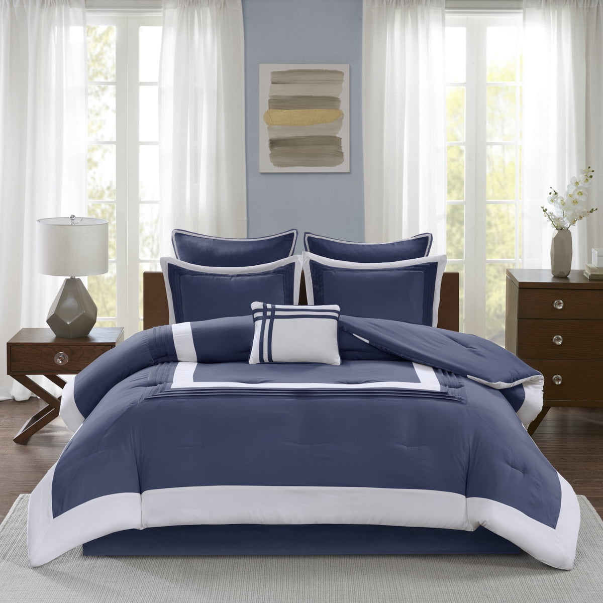 Bring home a 5 stars hotel bedroom decor into your own bedroom with our luxurious borders design comforter set from Malcom collection. The comforter features a soft microfiber with sophisticated pleating fabrication technique for a luxurious touch. Microfiber fabric is a really soft fabric that is naturally wrinkle and shrinkage resistant to bring you all season comfort for the years to come. Available in 2 sizes Queen and King and conveniently machine washable.