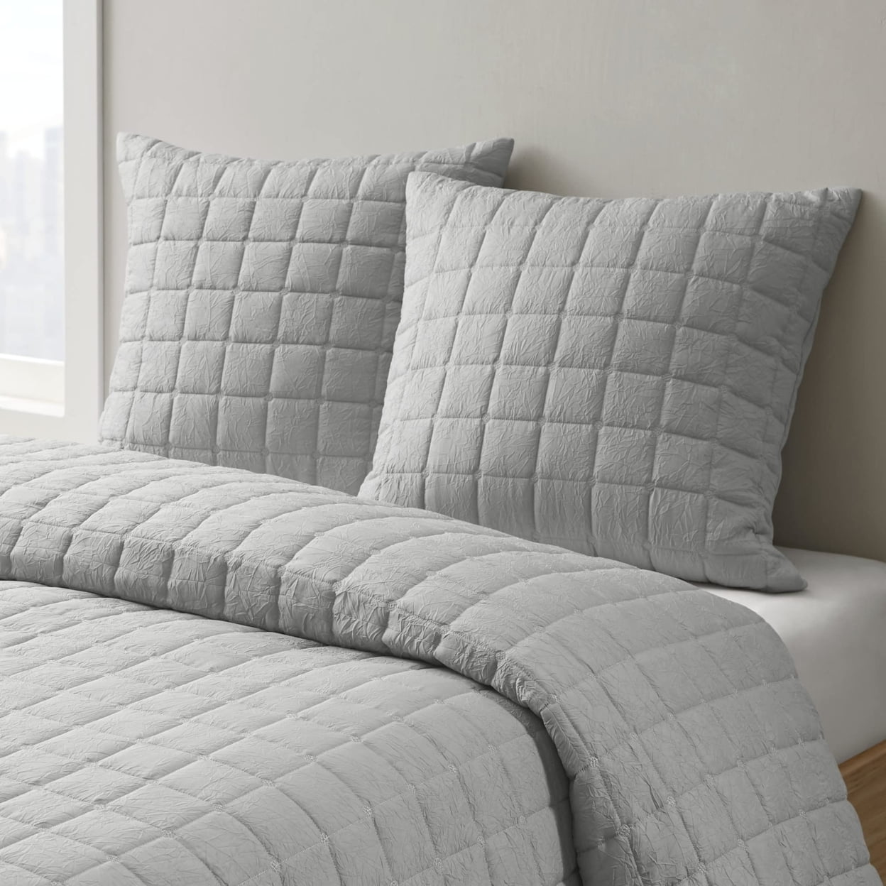 N Natori Cocoon Single Quilted Euro Sham, Grey The Cocoon Quilt Top Euro Sham by N Natori adds a simple and elegant touch to your bedroom décor. This solid Euro sham flaunts super soft crushed microfiber with a lofty over-quilted bot pattern to create a rich and textural modern look. A hidden zipper closure provides a clean, finished edge to complete the design. Machine washable for easy care, this quilted Euro sham brings an elevated touch to the style of your bed and is an accessory to the N Natori Cocoon bedding collection.