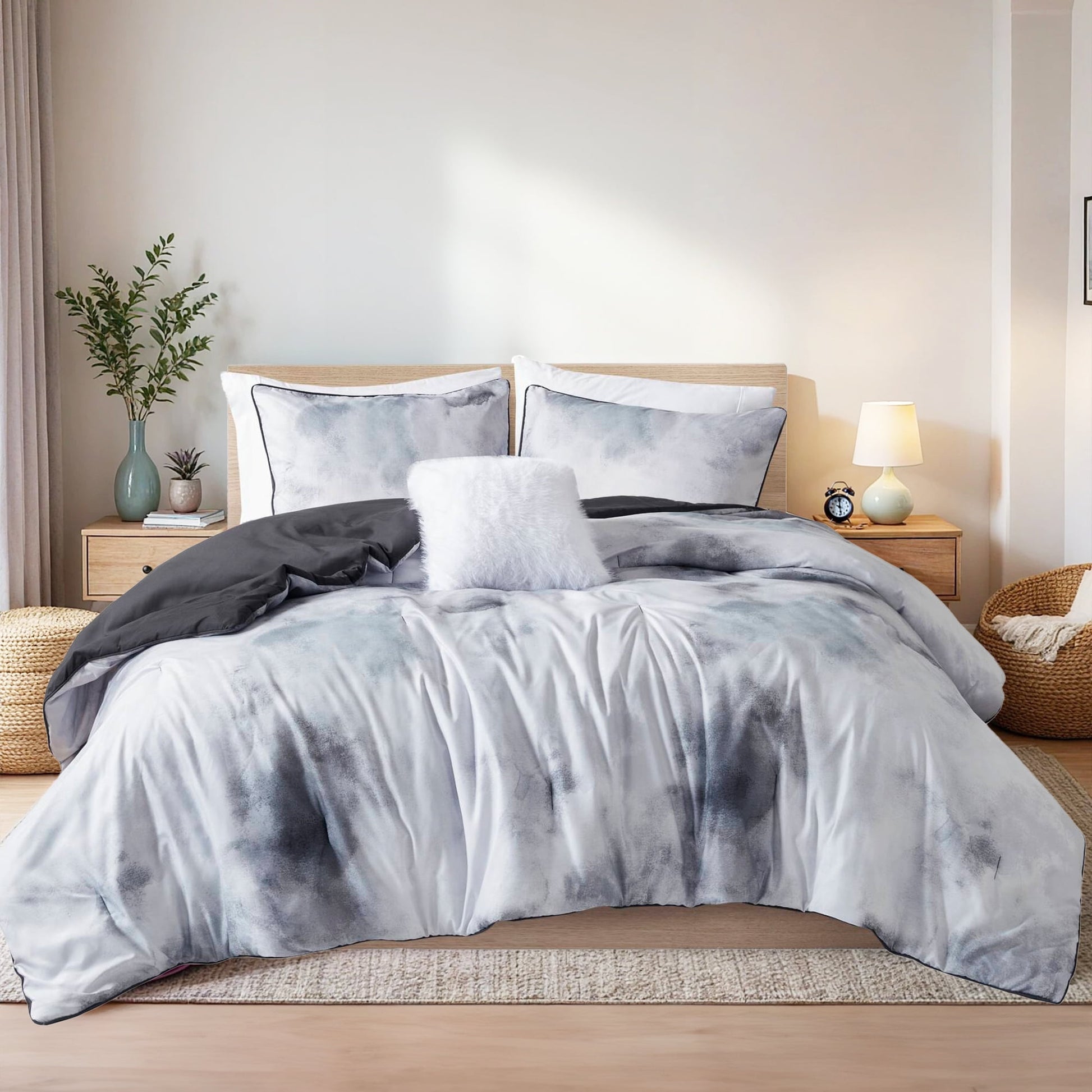 4 Piece Watercolor Tie Dye Printed Bedding Set, Comforter Set with Throw Pillow