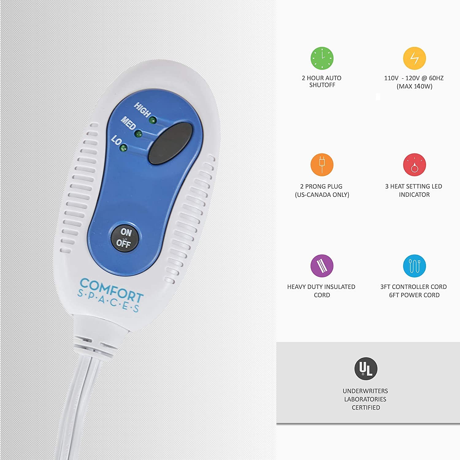 Forget the ordinary blankets, throws and stay warm and cozy with all over plush heated snuggle wrap blanket . This heated snuggle wrap features microlight fabric on the front and back for added comfort and warmth. This blue color adds a colorful touch to your bedding set. This snuggle wrap is perfect for chilly winters to lounge around your house. The wrap measures 50(W)x64(L) inches and features a 36-inch opening making it easier to wear and remove. It is also available in other color options. So, shop for a heated snuggle wrap that complements your bed sheet and the color of your bedroom walls. Limited 5-year warranty on parts.