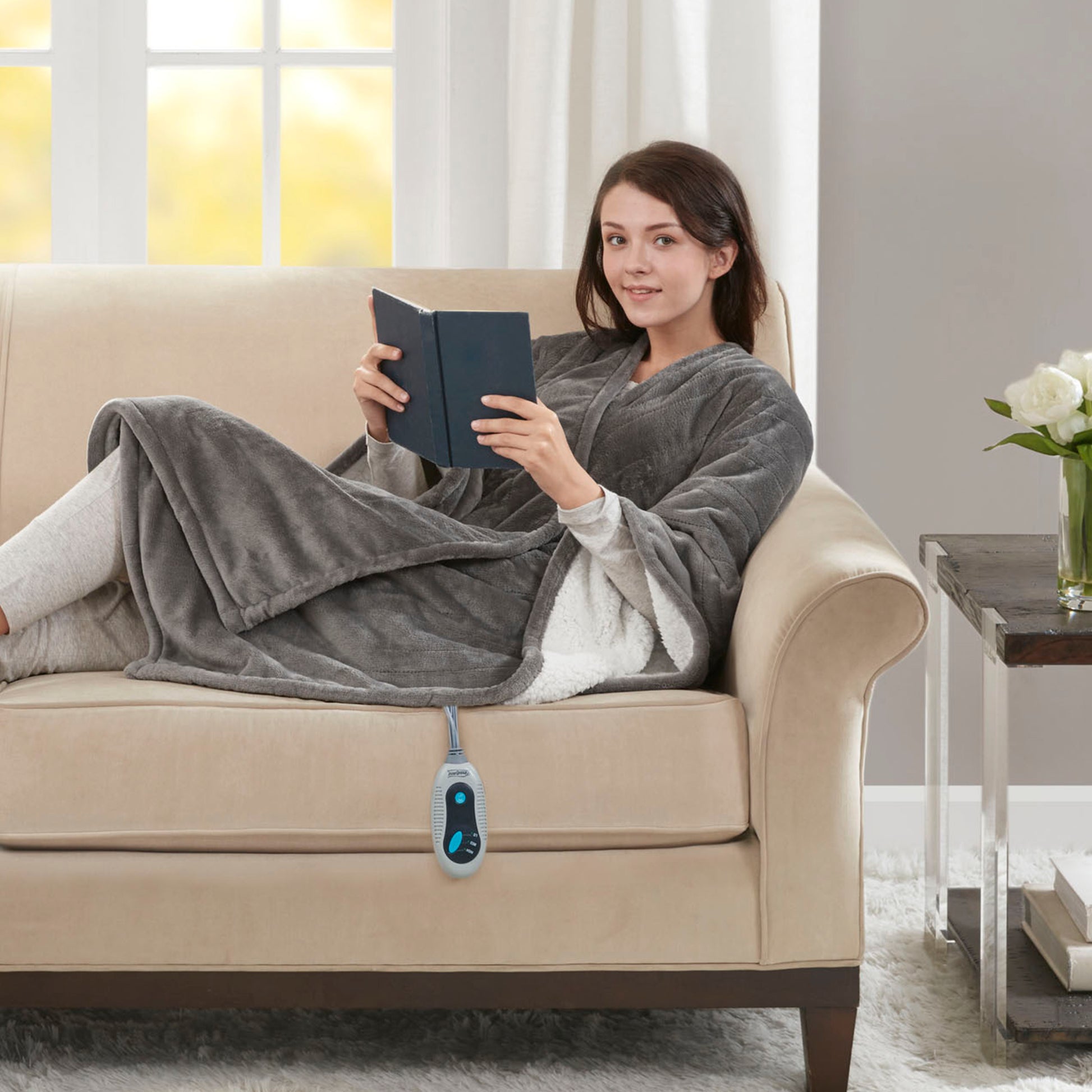 Relax in the warmth and comfort of the Beauty rest Heated Snuggle Wrap. Made from plaid microlight polyester fabric with an ivory micro Berber reverse, this heated wrap is incredibly soft to the touch. Emitting virtually no electromagnetic field emissions, 3 heat settings allow you to find the perfect temperature, while the 2-hour auto shut-off timer provides safety and protection from overuse. Machine washable, this heated snuggle wrap is perfect to bundle up in to keep warm and cozy this winter season.
