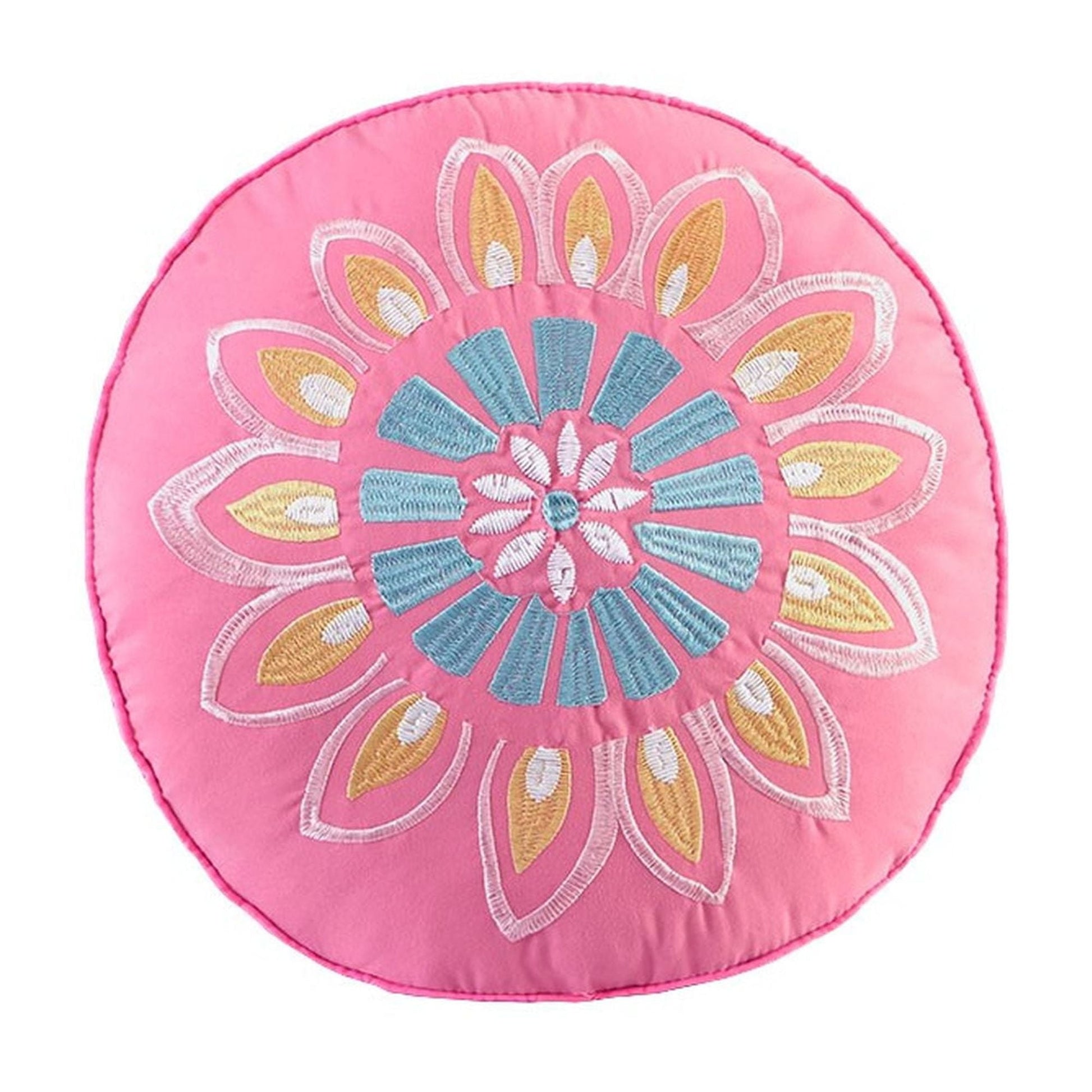 Brighten your bedroom with the fun and colorful style of the Camille Floral Comforter Set. The bright comforter and shams features a vibrant medallion flower print with a solid pink reverse, creating an adorable look. A round floral decorative pillow with embroidery complements the comforter set and adds the finishing touch.