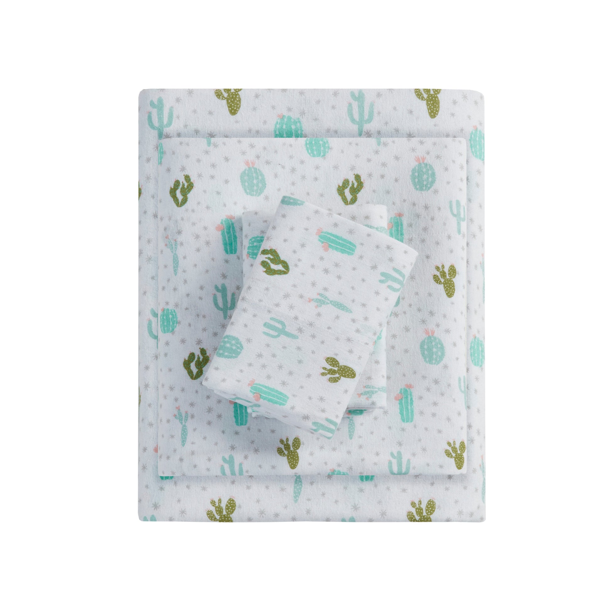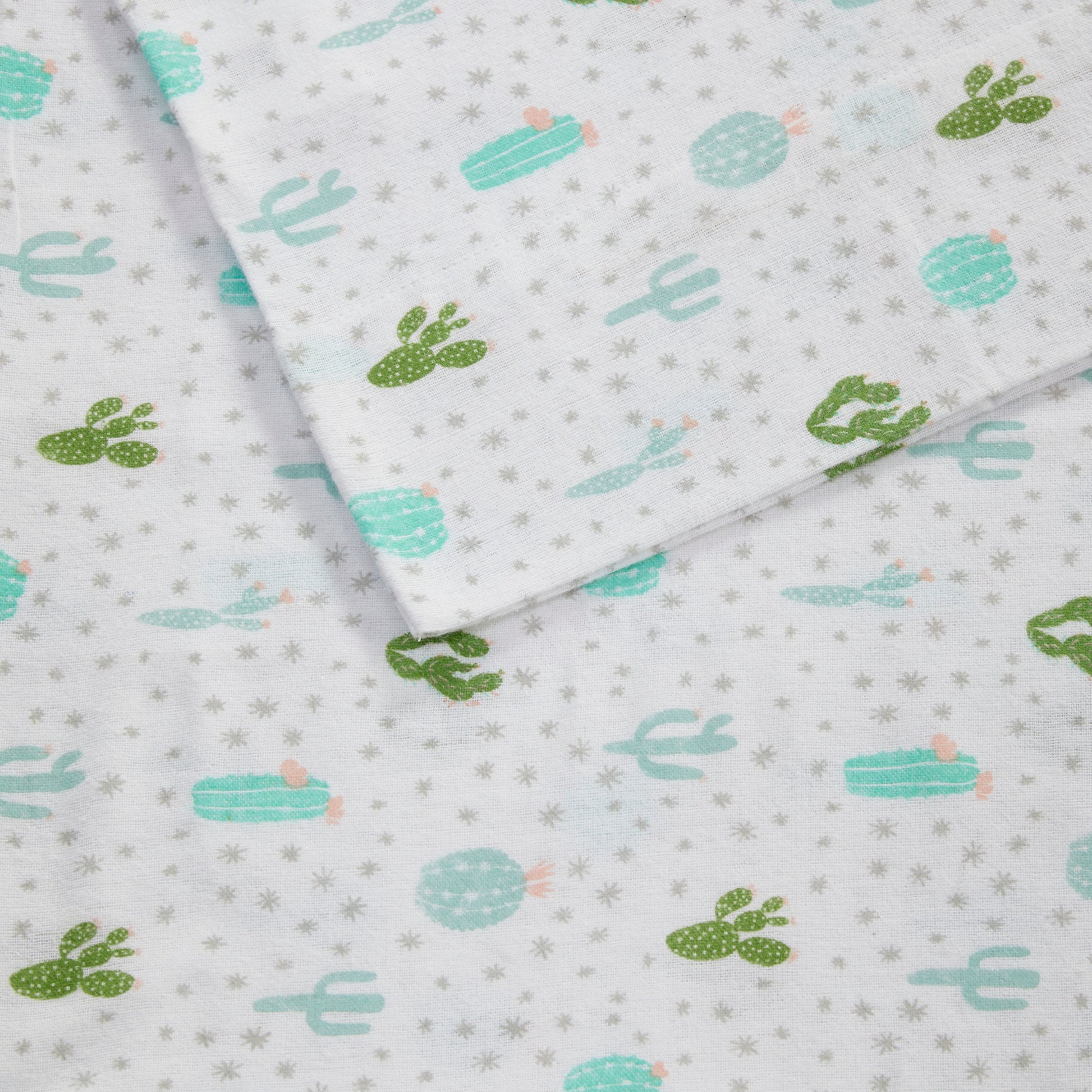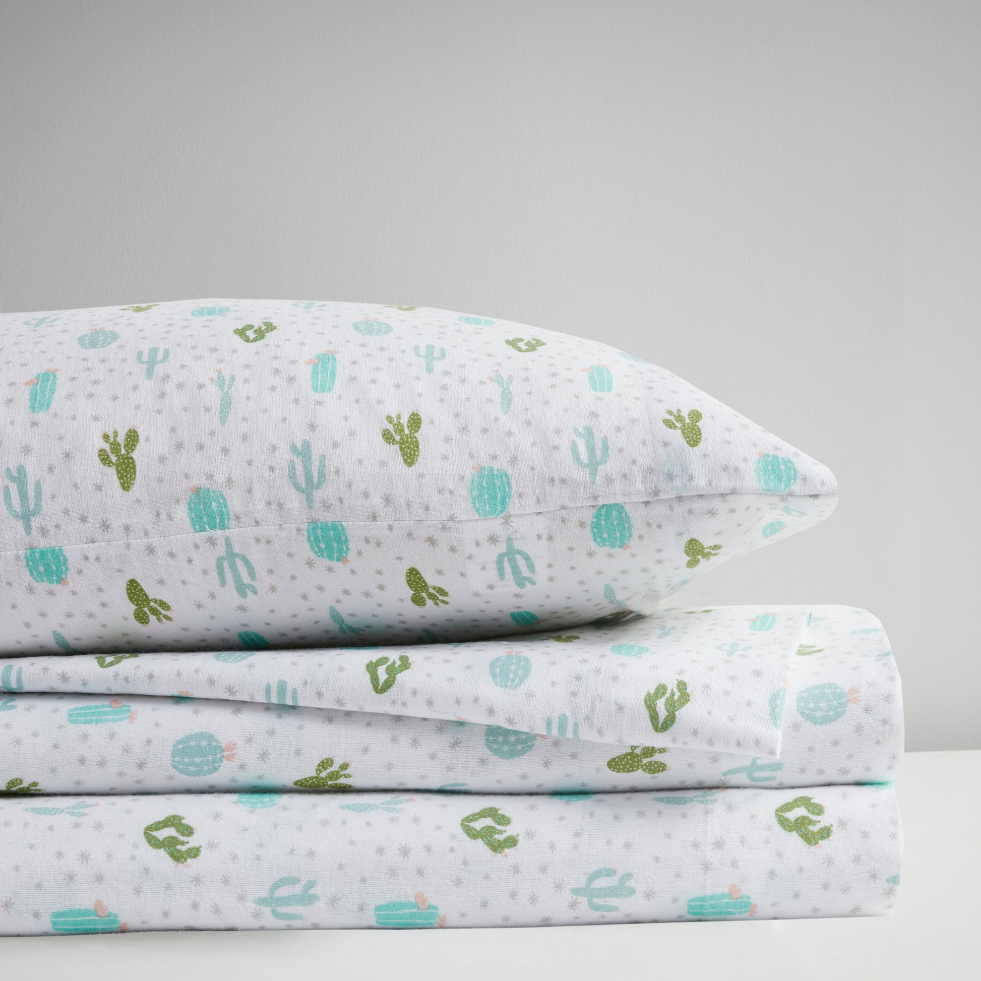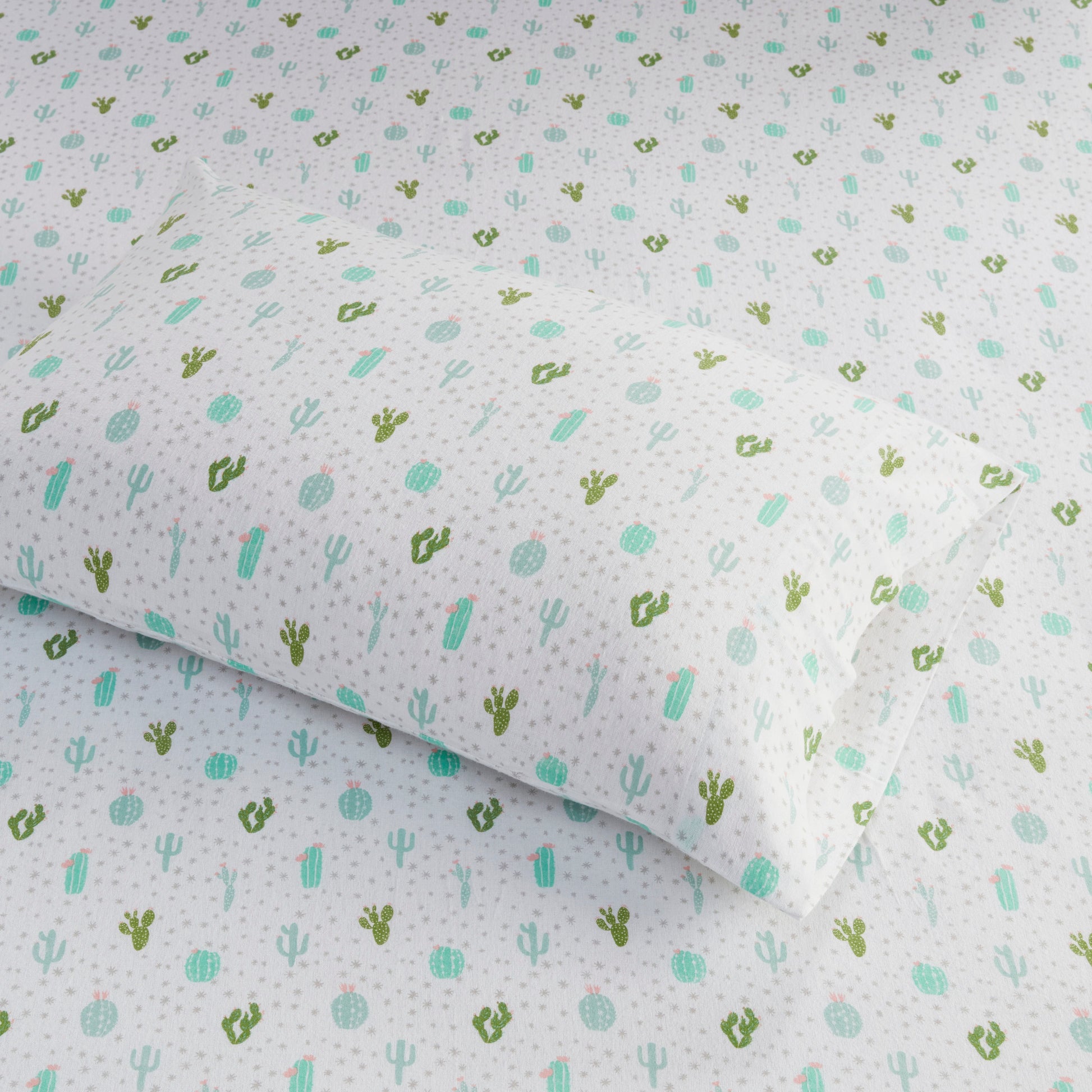 Cotton Flannel Pigment Printed Sheet Set in Green Cactus