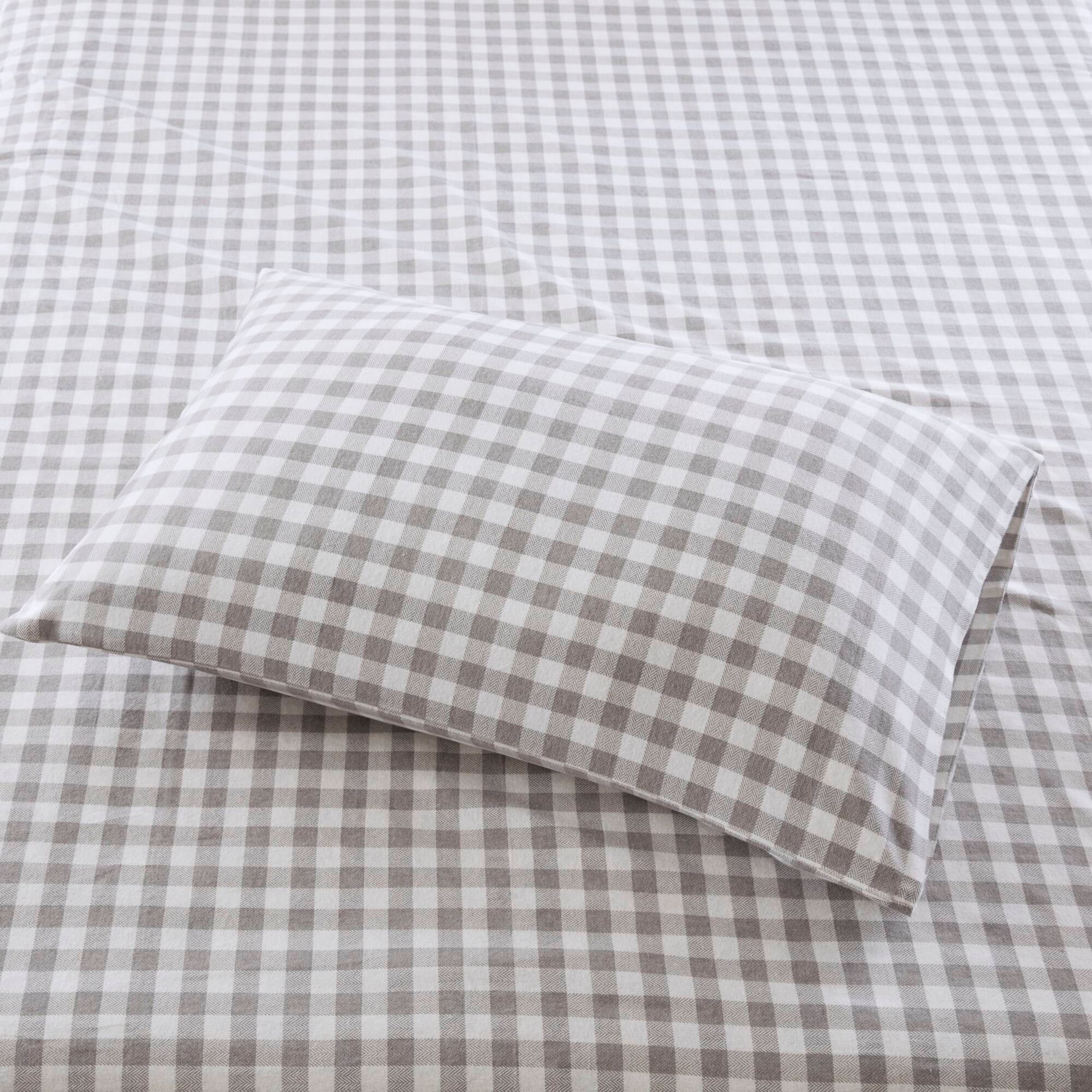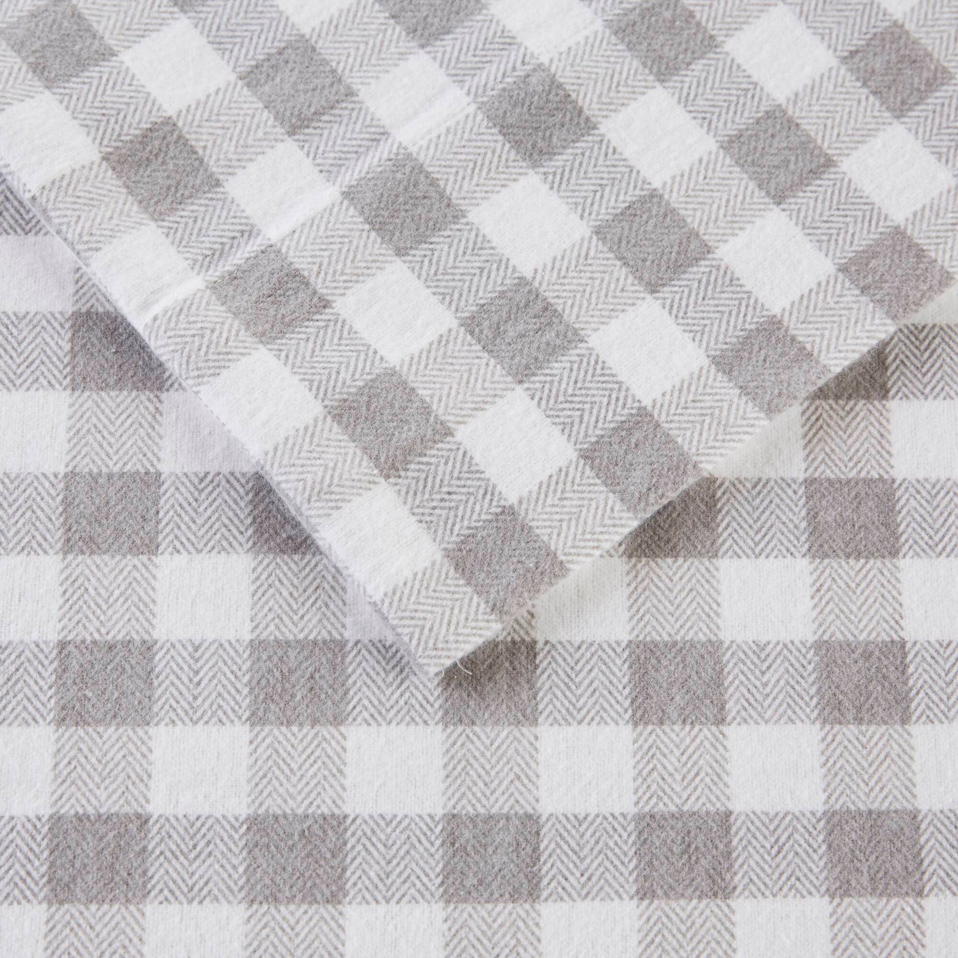 Cotton Flannel Gray Herringbone Check Printed Bed Sheet Set