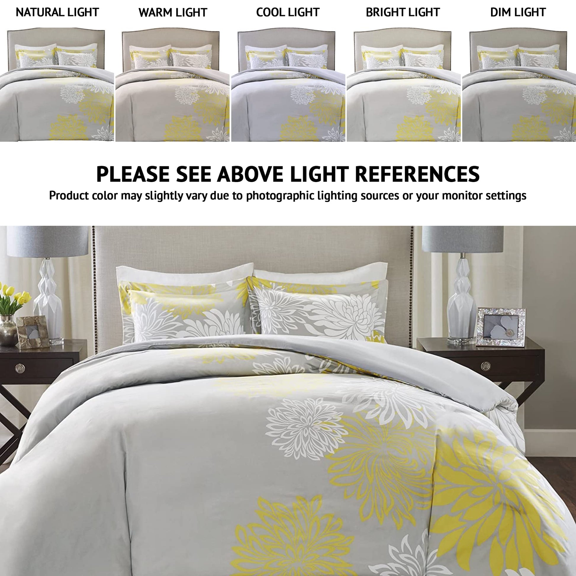 Queen Bedding Comforter Sets Modern Floral Design, All Season Down Alternative Bedding, Matching Shams, Bedskirt, Decorative Pillows, Queen, Yellow 5 Piece. Whether it is the energetic tones or soothing neutral bedding options that you are looking for Comfort Spaces has a product that has the best of both the worlds. 【FLORAL PATTERN】 Enya 5-piece Floral Printed Comforter Set in Yellow grey and white adds a fun element to your whole bedroom ensemble. The pleasant combination is sure to heighten your excitement. 【DESIGN】 Enya 5 piece comforter set features a bold, colorful floral design to turn your bedroom into favorite getaway. With the Comfort Spaces’ latest collection featuring modern and nature-inspired patterns, is better for you, your family, and the planet. 【CHOICES】 It's offered available sizes: Queen and King. Also available in other color Blush and Yellow.