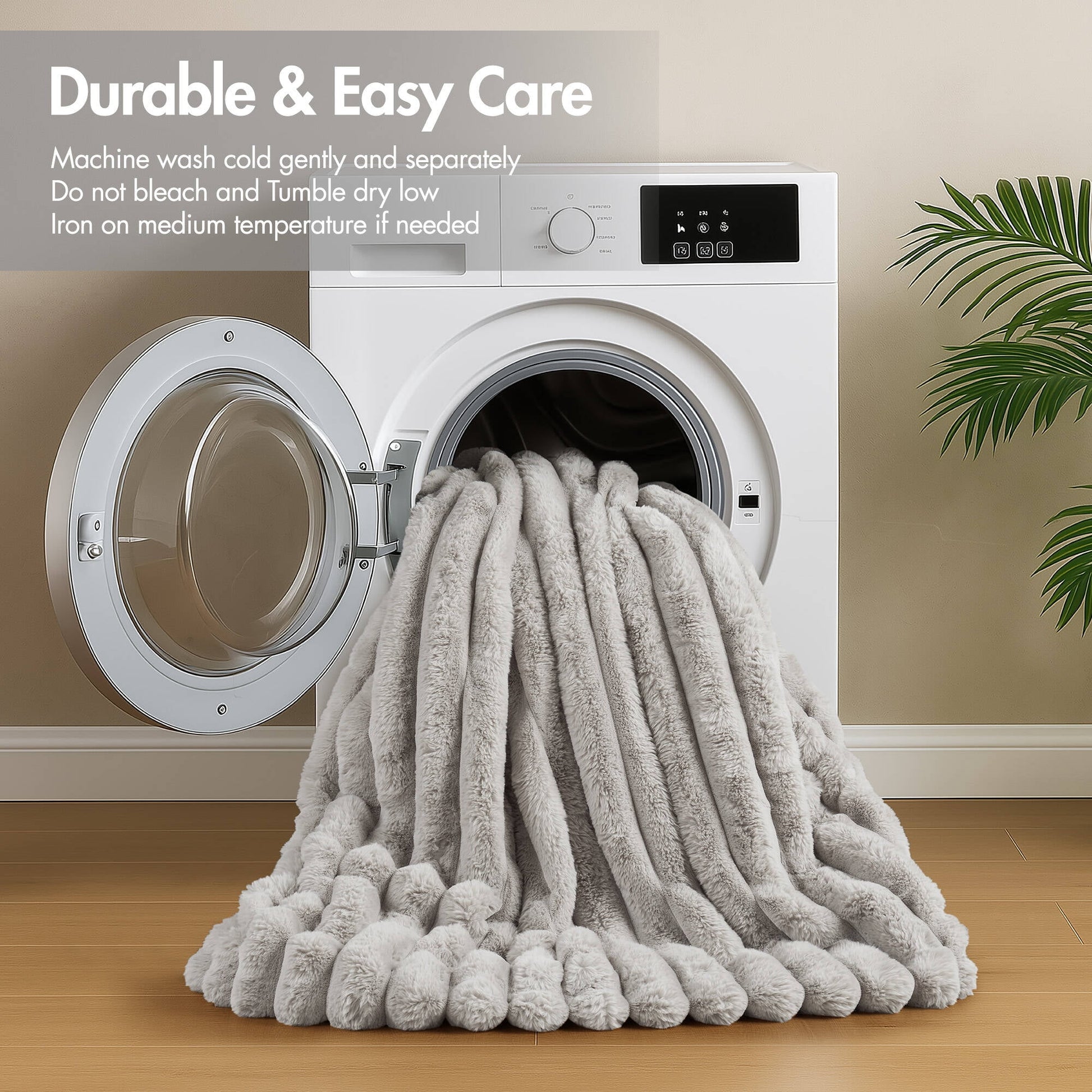 - Fluffy ribbed cord-textured face for a premium hand feel