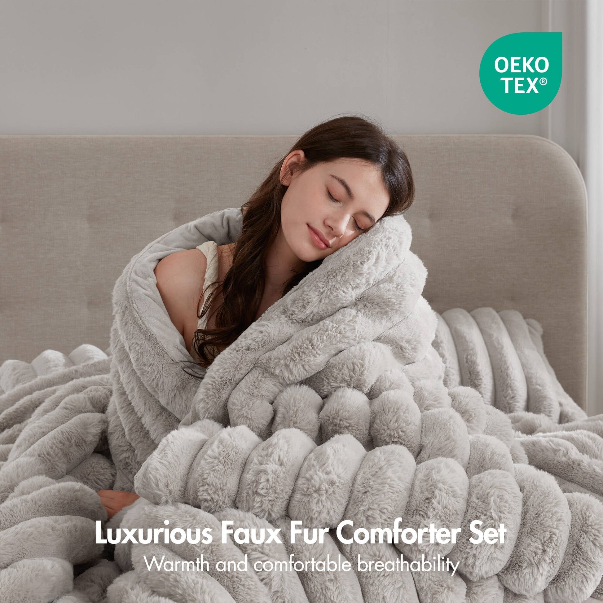 Curl up in the irresistibly cozy warmth of our luxurious, fluffy ribbed bedding set. Featuring a smooth faux fur front and an ultra-soft crystal velvet backing, this comforter’s cord-textured, raised striped design creates a snug and stylish haven you’ll never want to leave. Certified by Oeko-Tex, this set reflects our commitment to safety and gentle, non-irritating skin contact. Crafted with a high-quality polyester fill, this durable bedding set perfectly balances breathability and a premium hand feel, ensuring a truly refined sleep experience night after night.