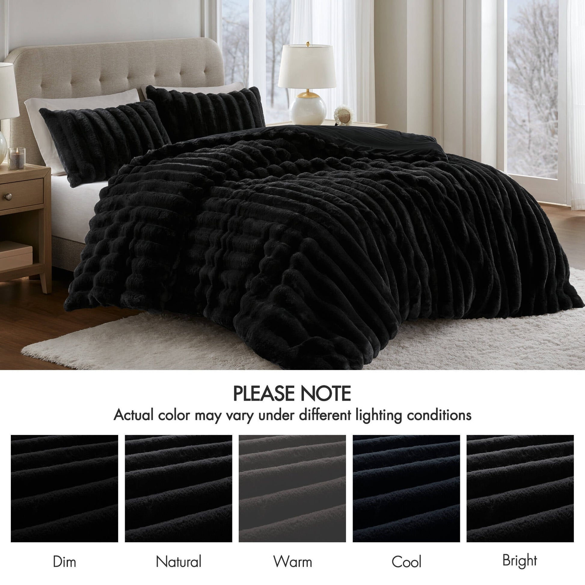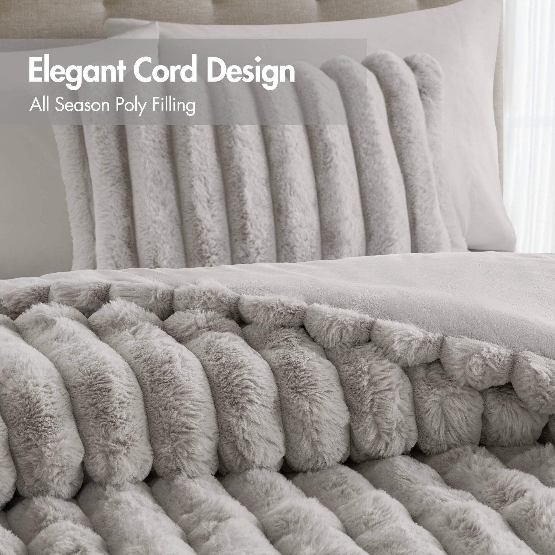 Faux Fur Fluffy Ribbed Bedding Comforter Set