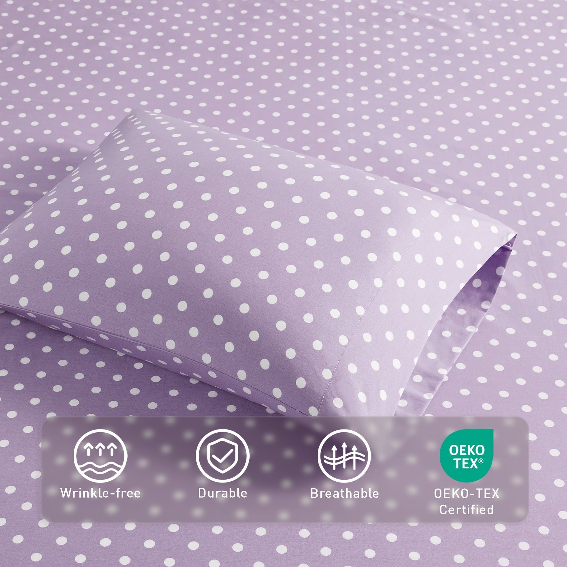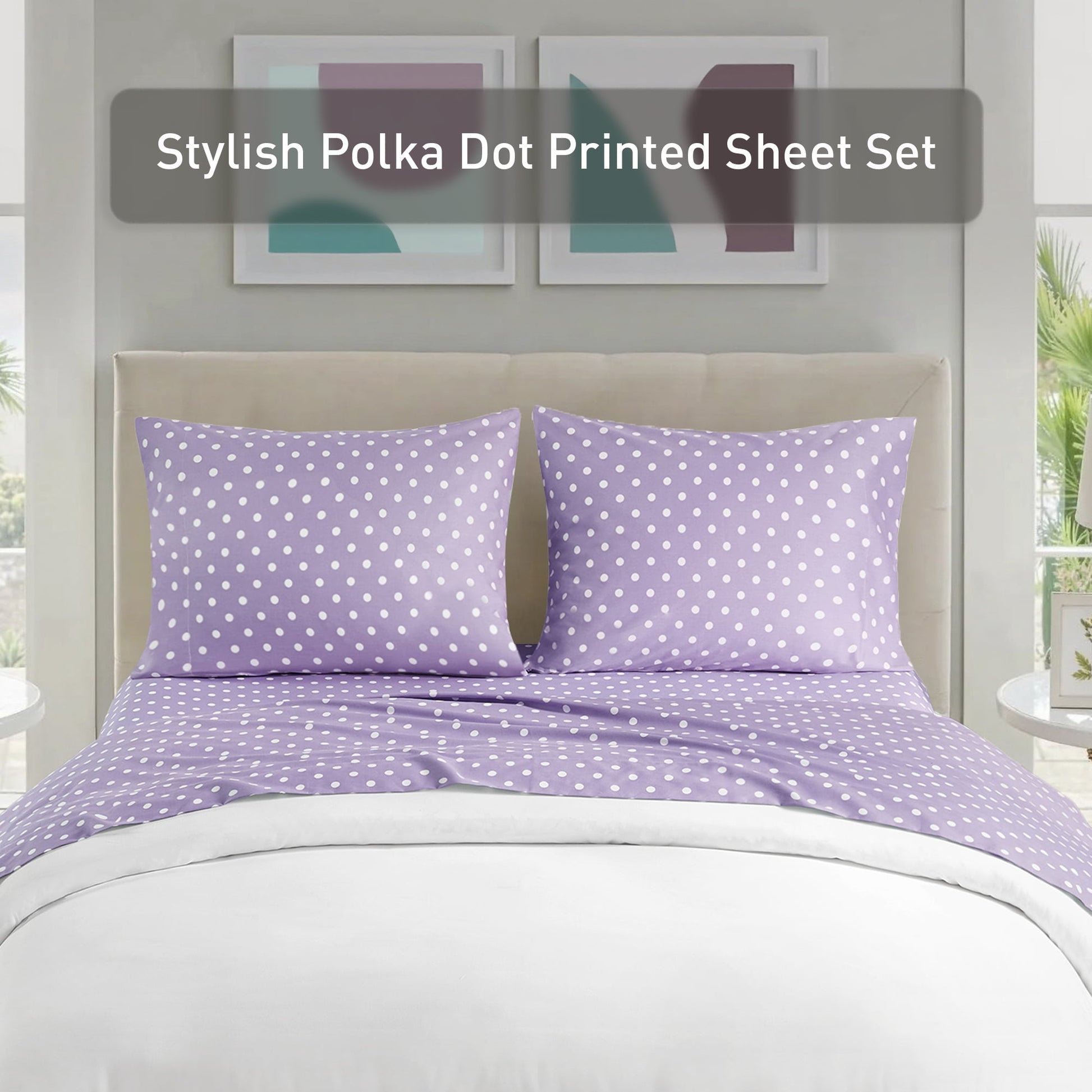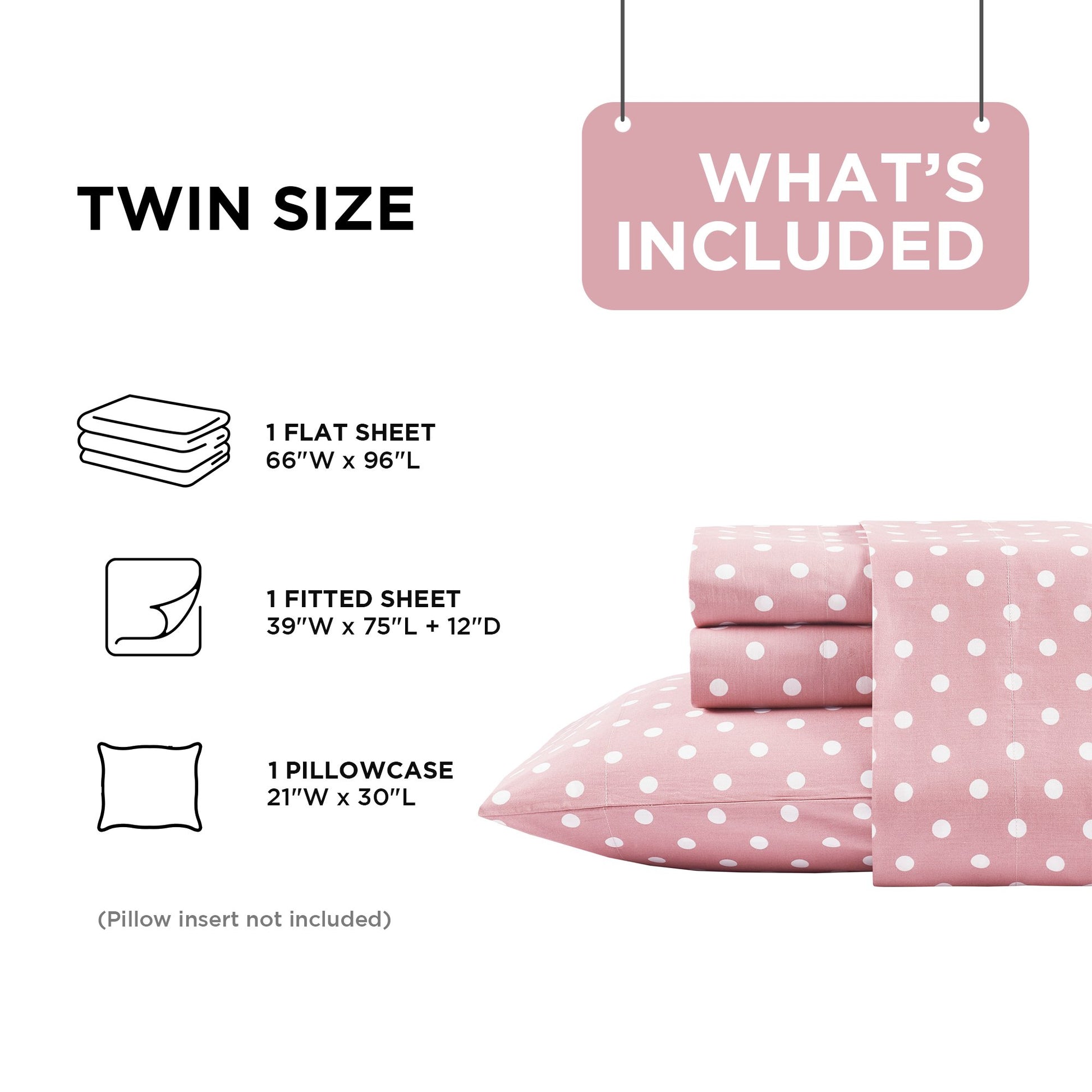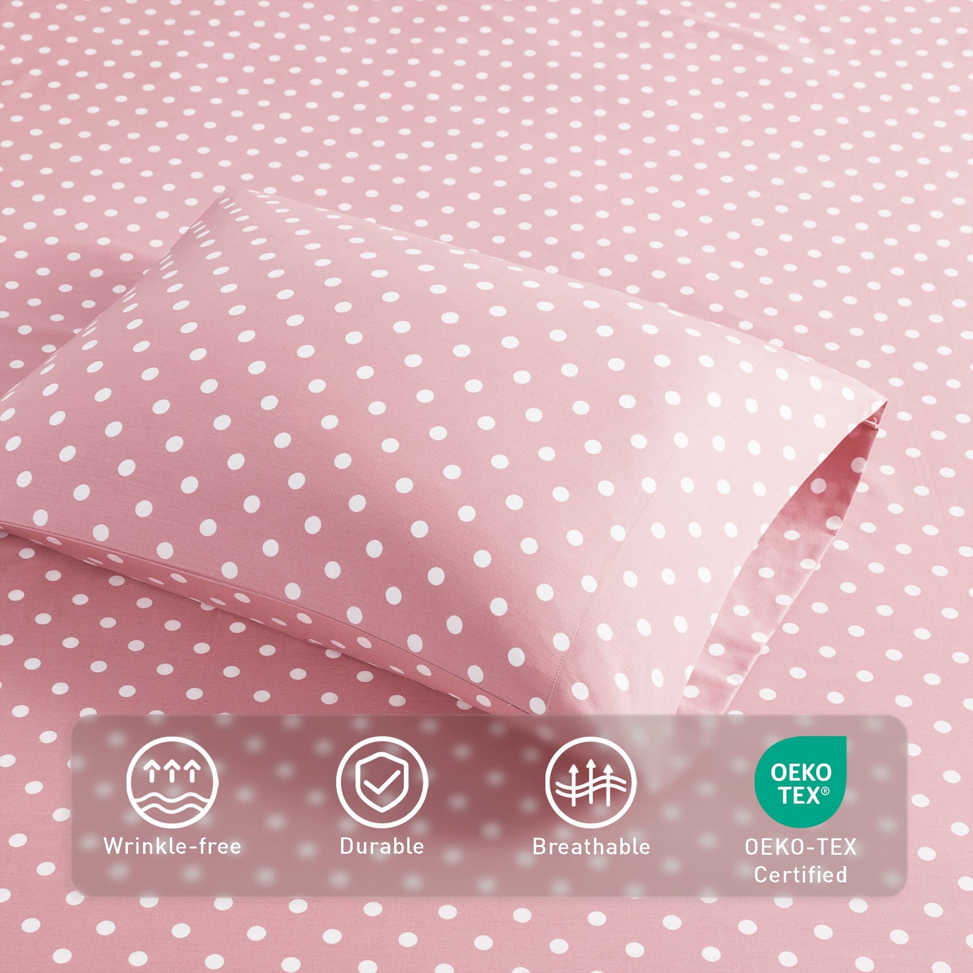 3-Piece Cotton Sheet Set Bed Sheets with Pillowcase Polka Dots Printed Sheet Bedding Sets for Kids