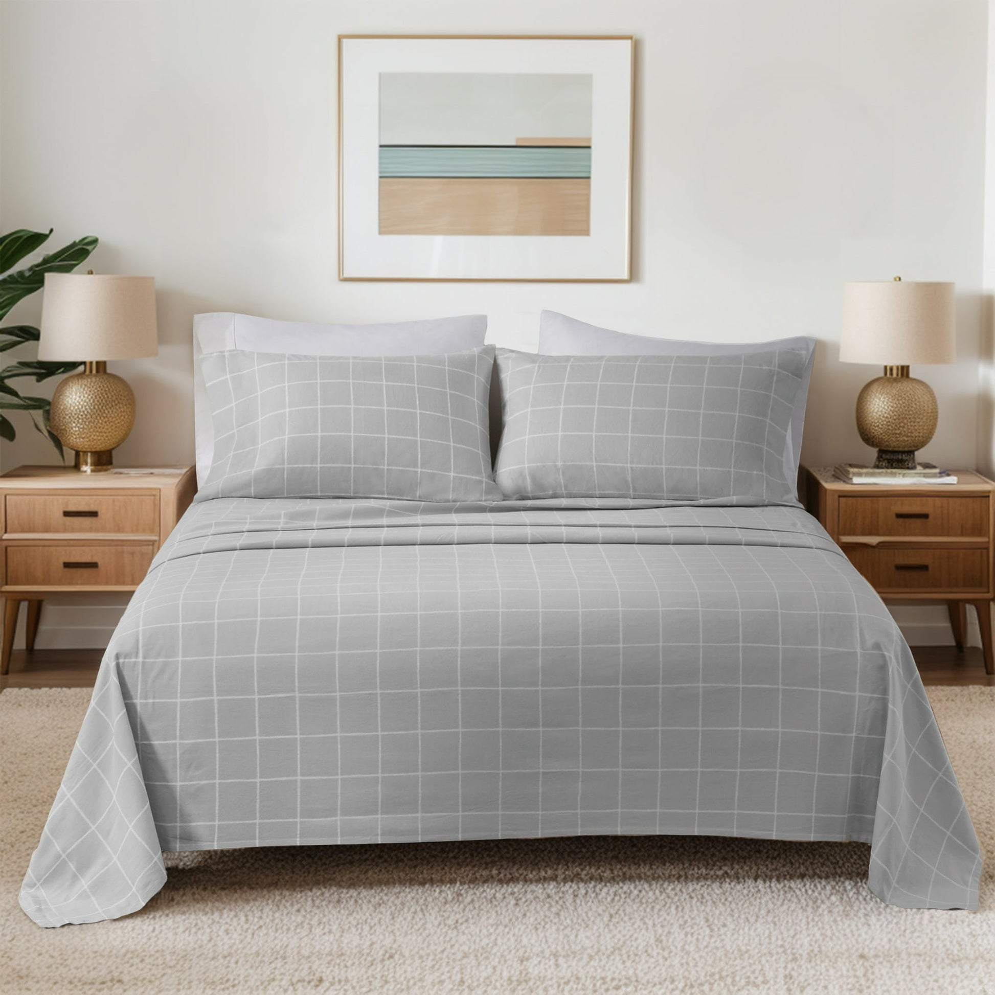 Sheet Set 100% Cotton Flannel Oversized Bed Sheets with Deep Pocket