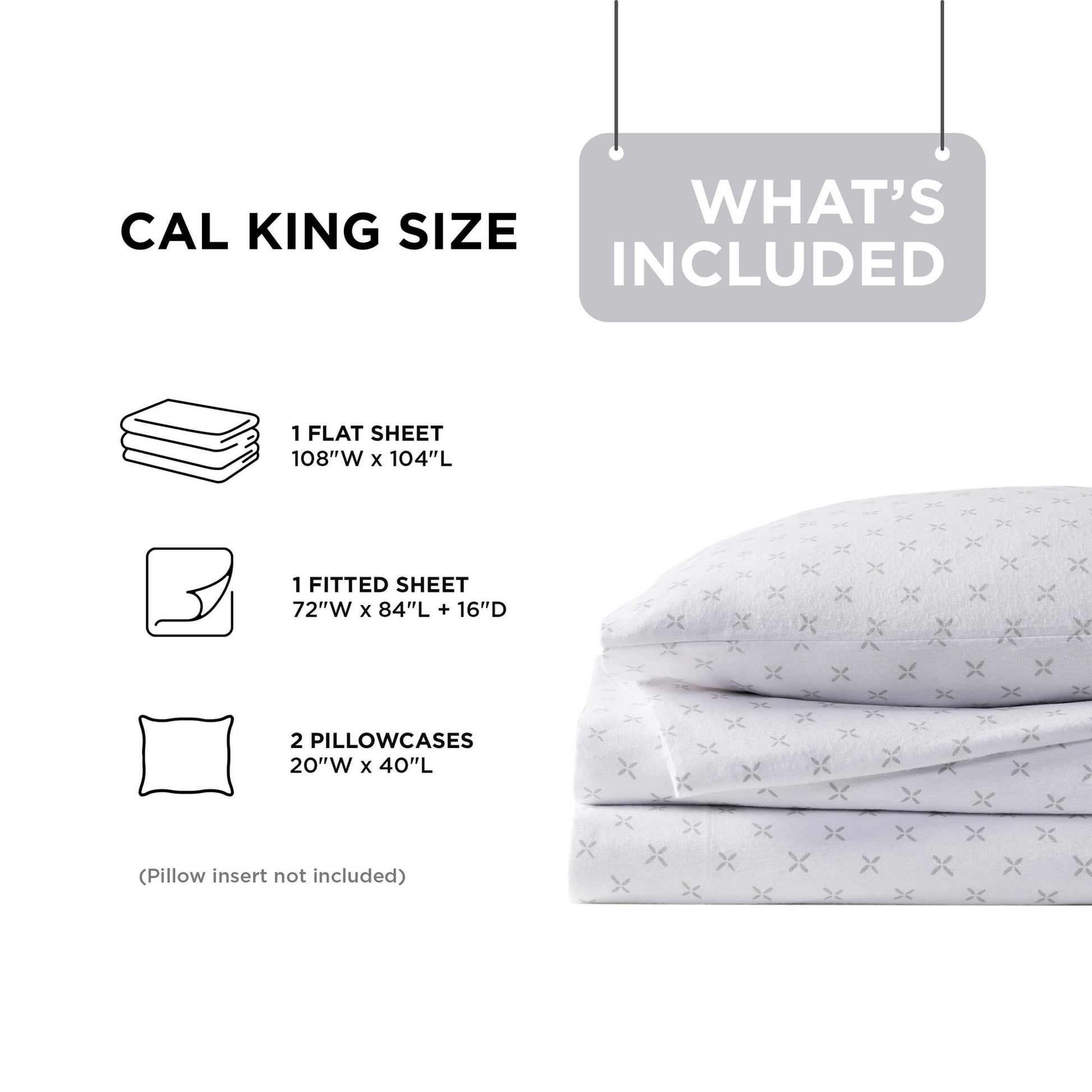 1 Flat Sheet: 108"W x 104"L