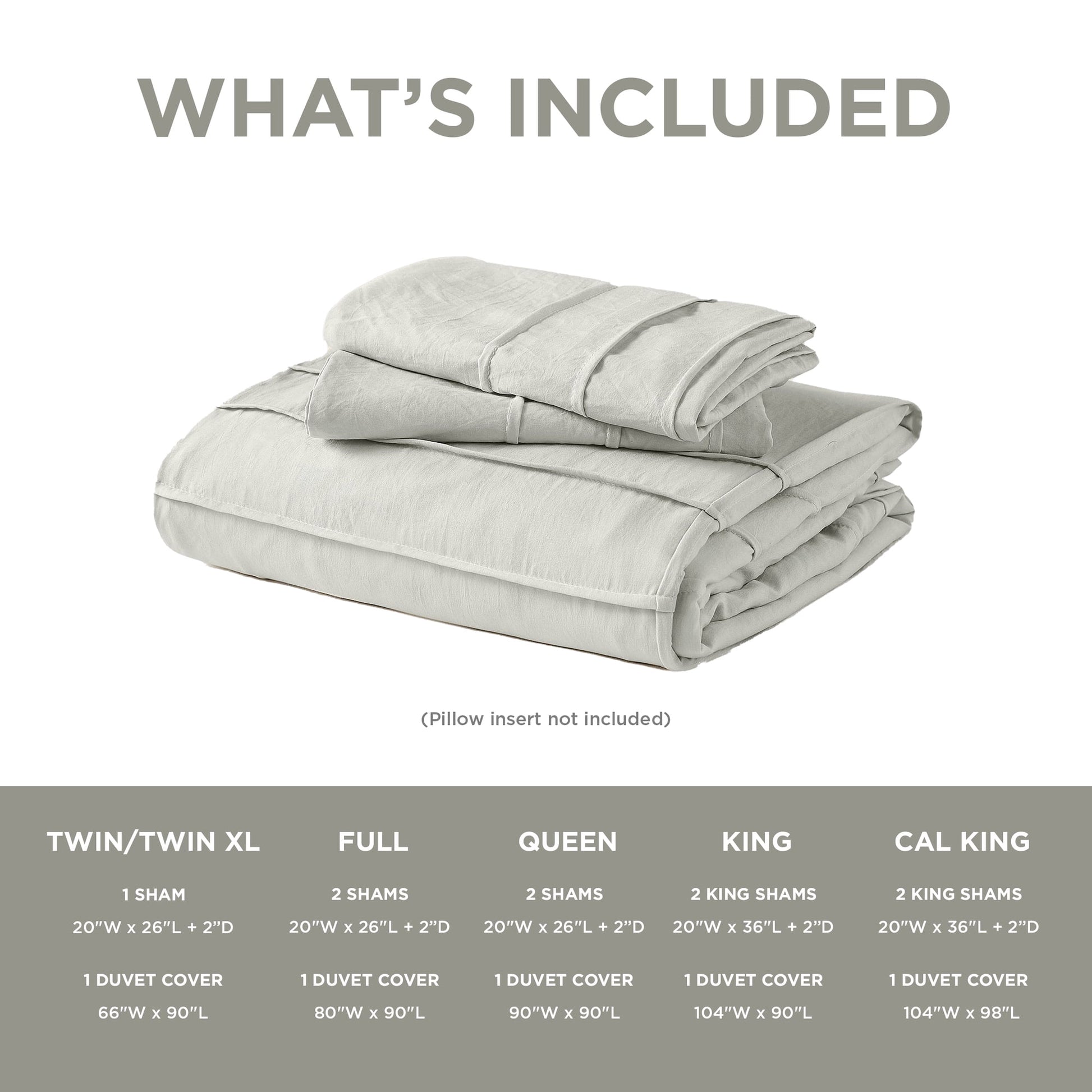 1 Duvet Cover:66"W x 90"L