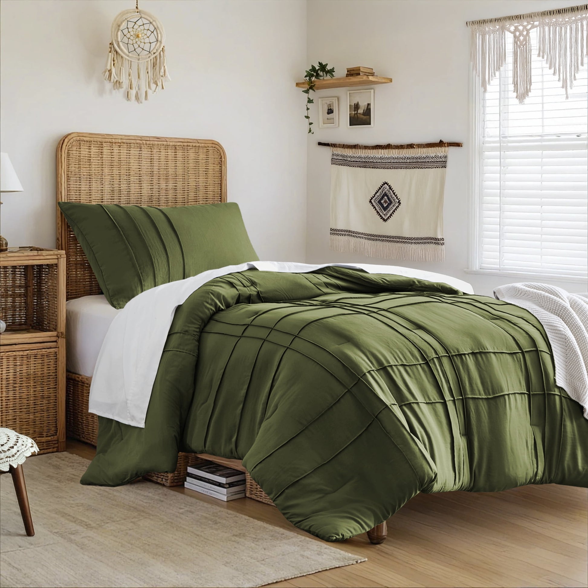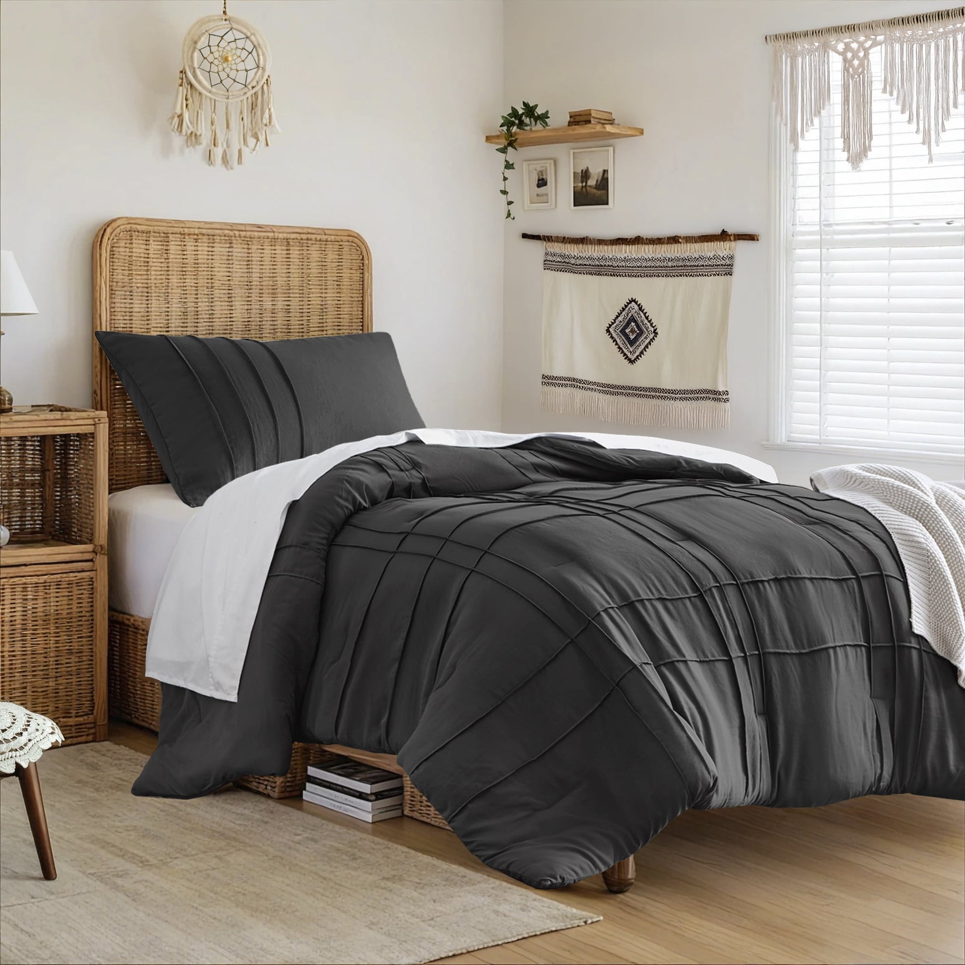 Featuring a pattern, our pinch pleat duvet cover set offers a sleek design crafted from soft materials. Made to be breathable for all seasons, the pre-washed microfiber cover has been treated to pamper your skin with extra gentleness, inviting you to unwind and rejuvenate.