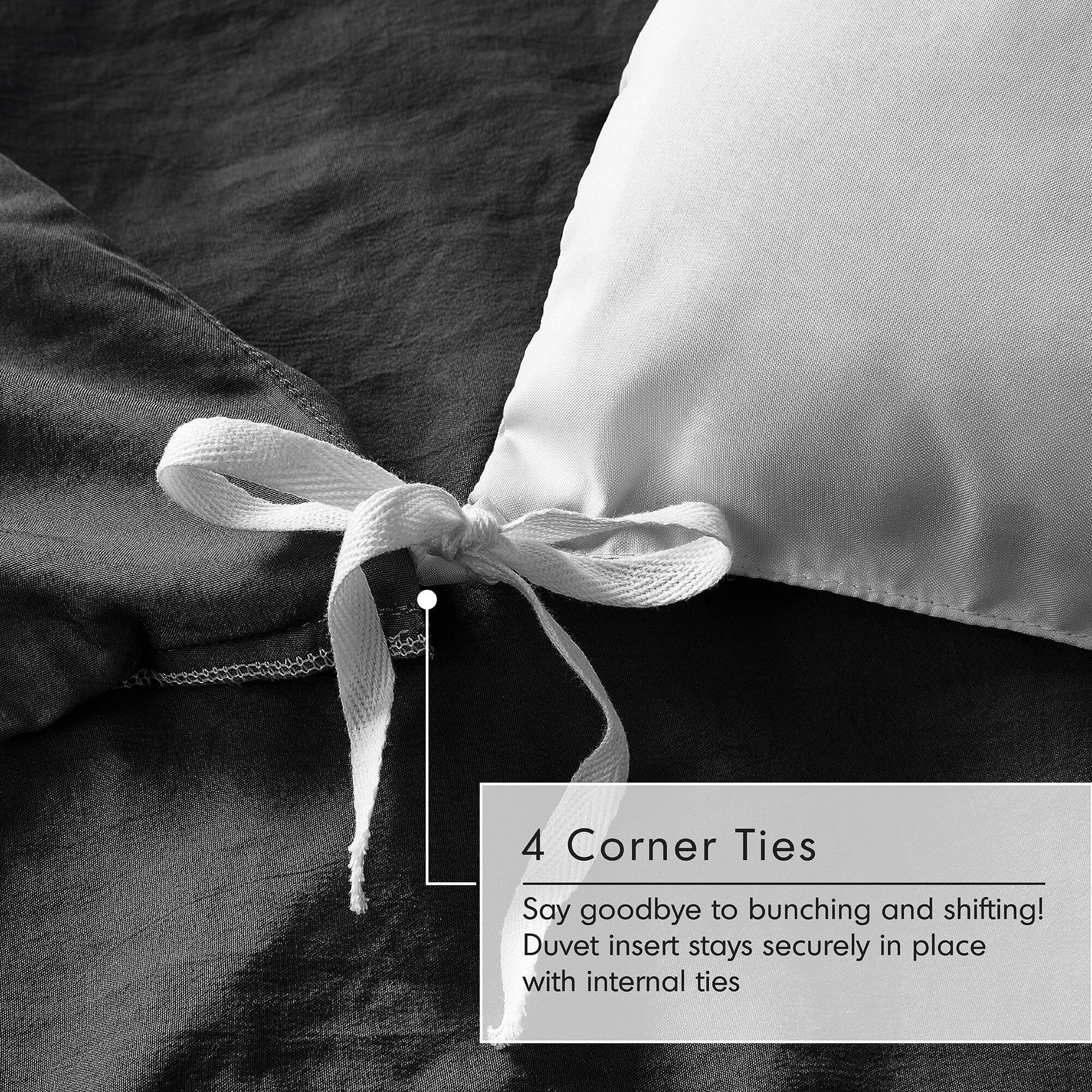 - Designed with 4 inside corner ties and a button closure to keep your duvet insert (not included) secure, preventing any bunching or shifting