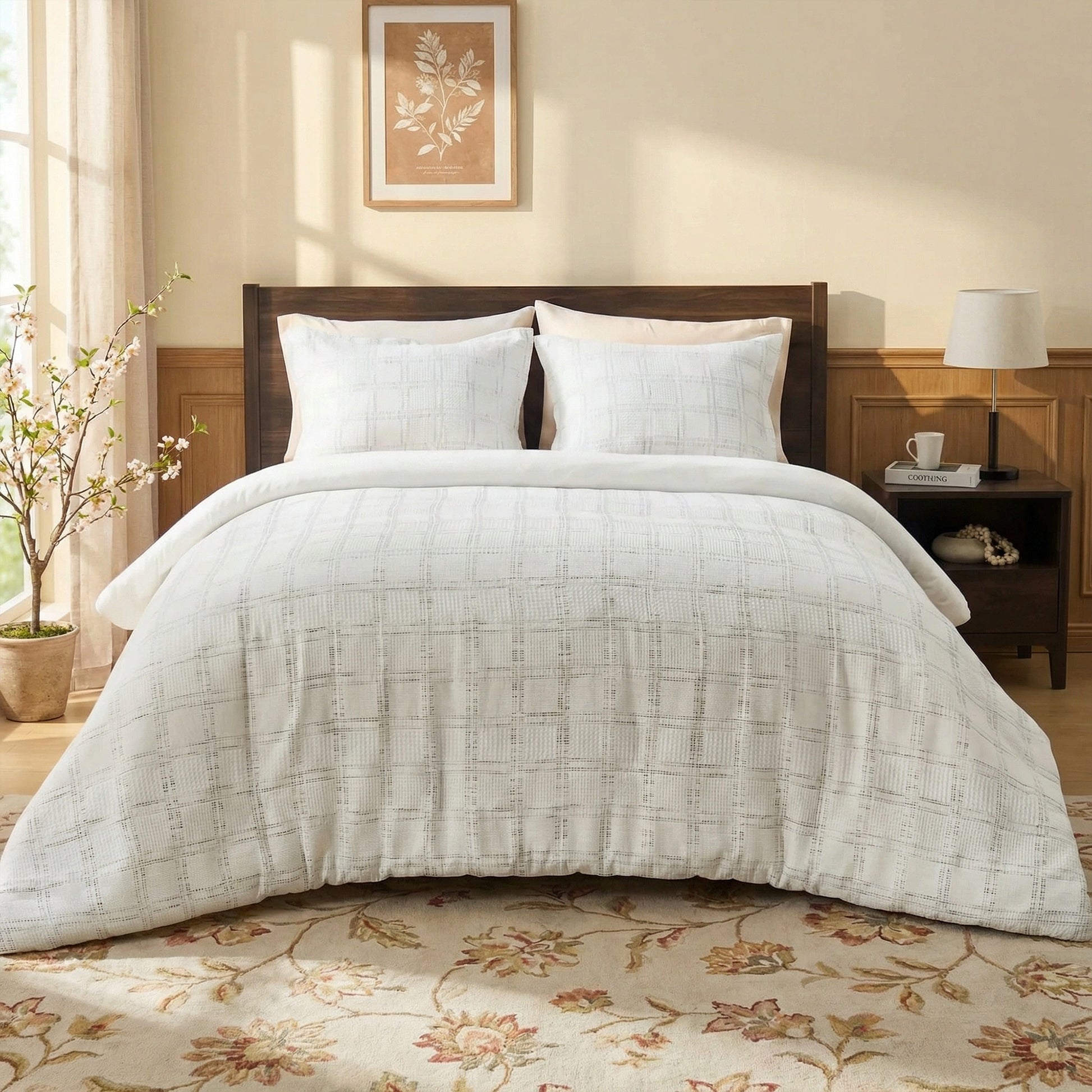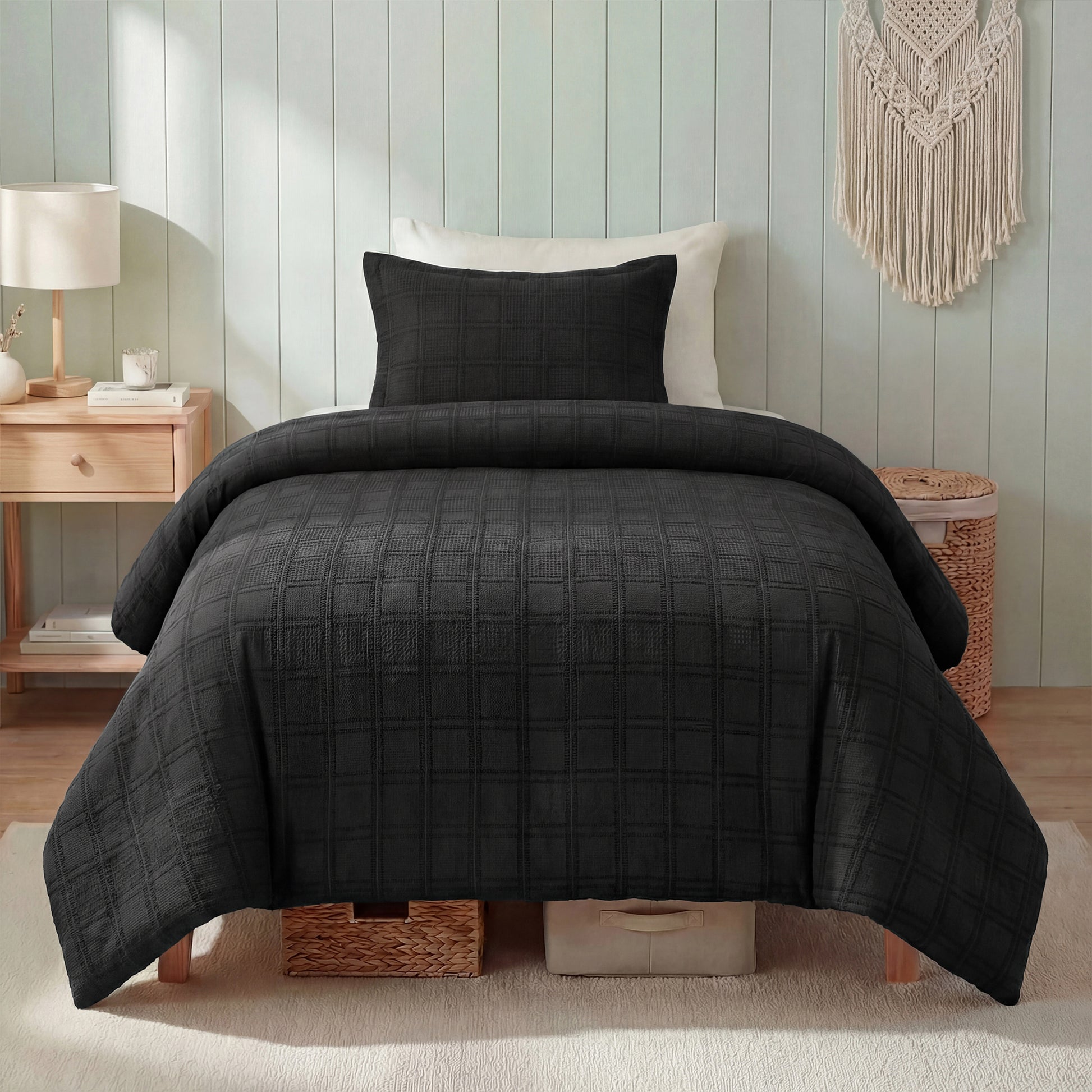 Solid Classic Waffle Weave Textured Duvet Cover Set